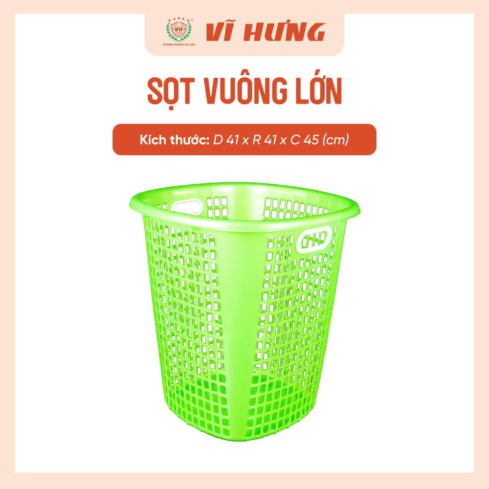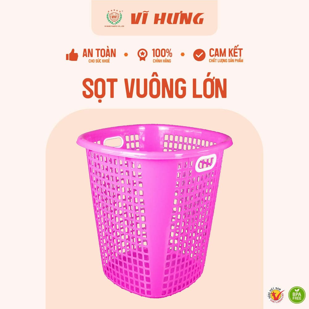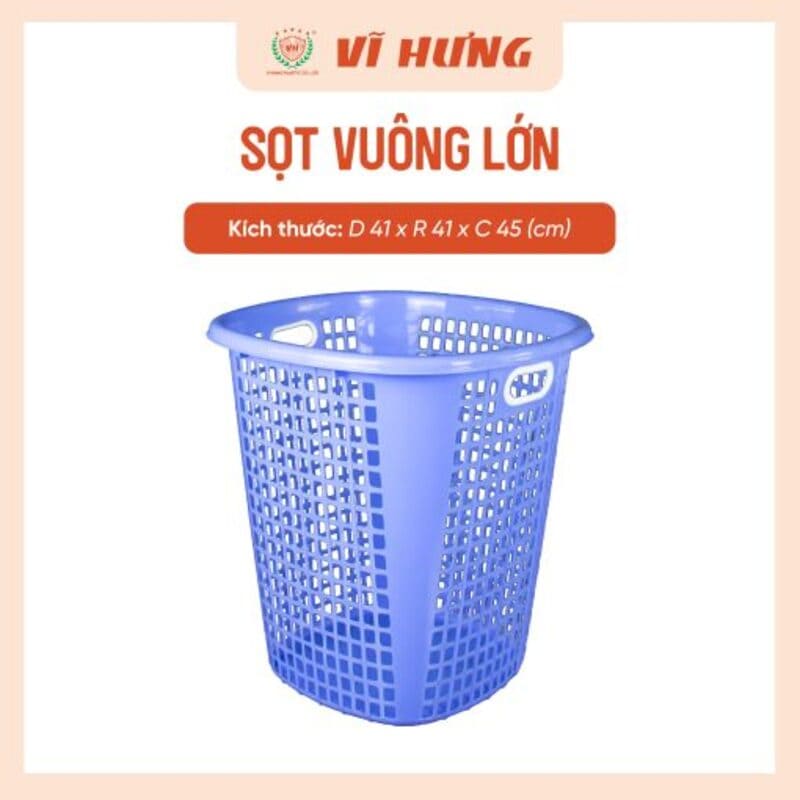 Tối ưu không gian lưu trữ với sọt nhựa đựng đồ có tay cầm kiểu vuông size Lớn VH. Thiết kế hình vuông rộng rãi, tay cầm chắc chắn, dễ di chuyển và cất giữ. Chất liệu nhựa cao cấp bền đẹp, chịu lực tốt, dễ lau chùi, thích hợp để đựng đồ dùng sinh hoạt, quần áo, đồ chơi hoặc vật dụng cá nhân trong gia đình, văn phòng hoặc mang đi dã ngoại.