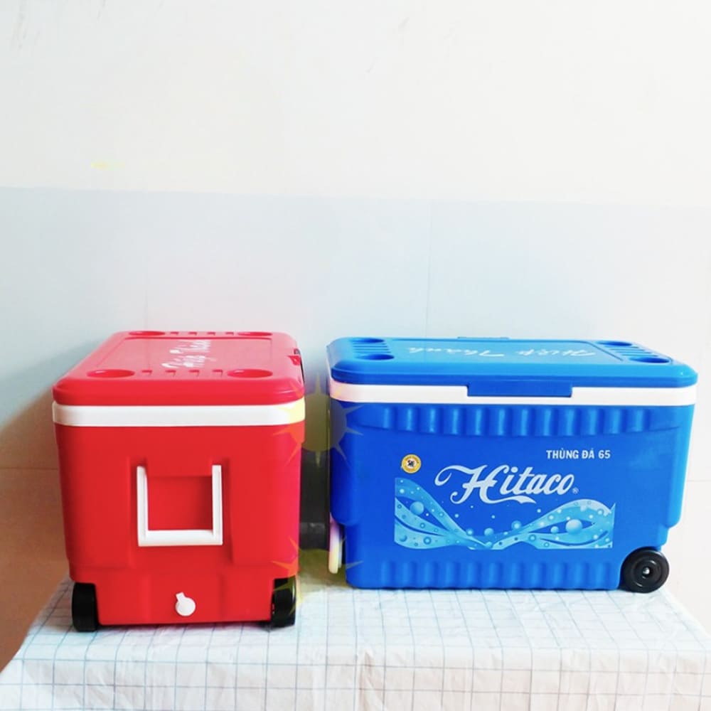 Thùng đá vuông nhựa Hiệp Thành Hitaco 65 lít là phiên bản nâng cấp cực kỳ tiện lợi, được trang bị tay kéo và bánh xe di chuyển dễ dàng, giúp việc mang theo thùng đá nặng trở nên nhẹ nhàng hơn bao giờ hết. Sản phẩm có dung tích lớn 65L, làm từ nhựa cao cấp dày bền, giữ lạnh tốt, chống va đập hiệu quả. Thiết kế hiện đại, chắc chắn, rất thích hợp dùng cho quán nước, nhà hàng, tiệc ngoài trời, dã ngoại hoặc du lịch xa.