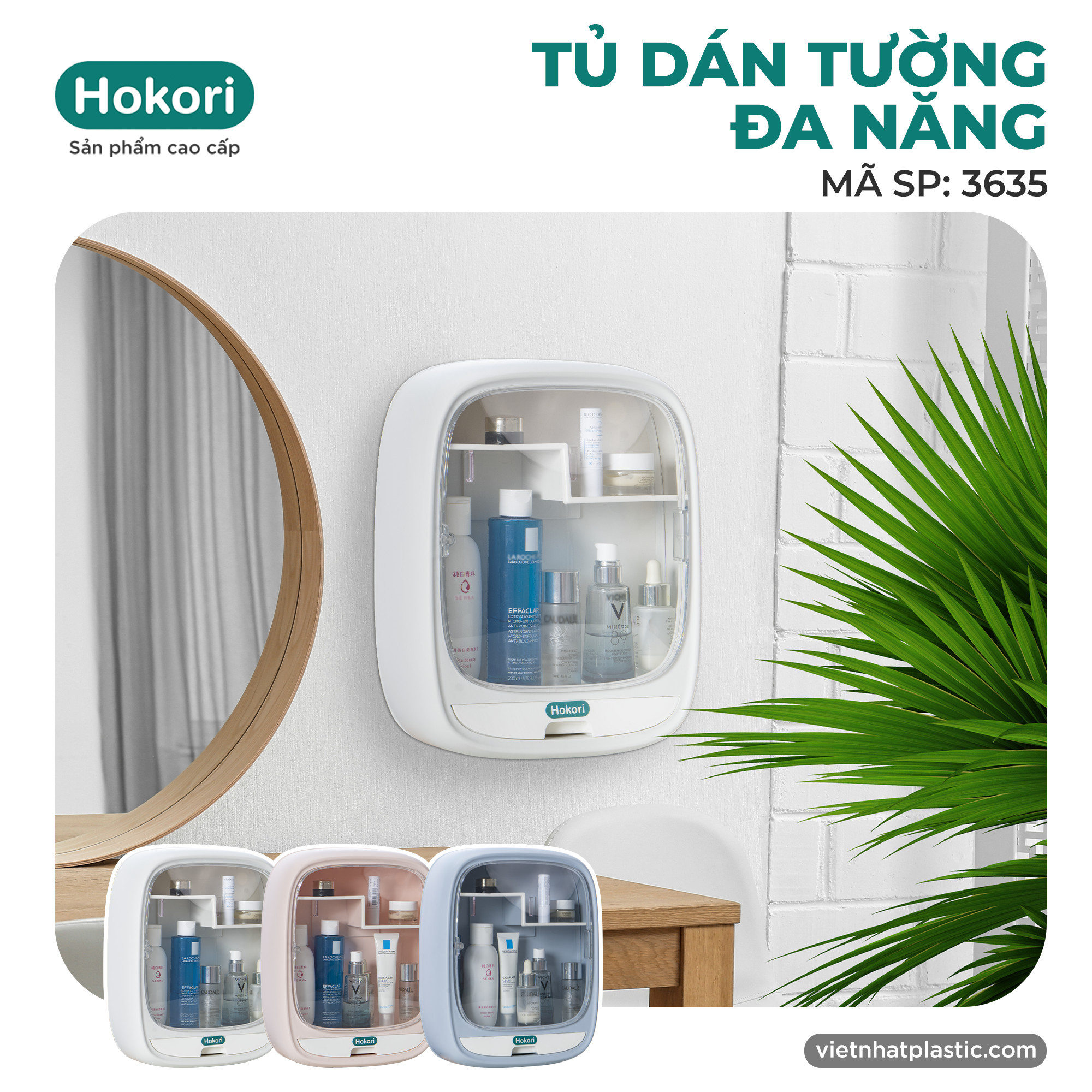☑ Kệ mỹ phẩm được sản xuất trên dây chuyền hiện đại giúp bảo quản mỹ phẩm luôn gọn gàng, ngăn nắp, tránh bụi bẩn, ẩm mốc.