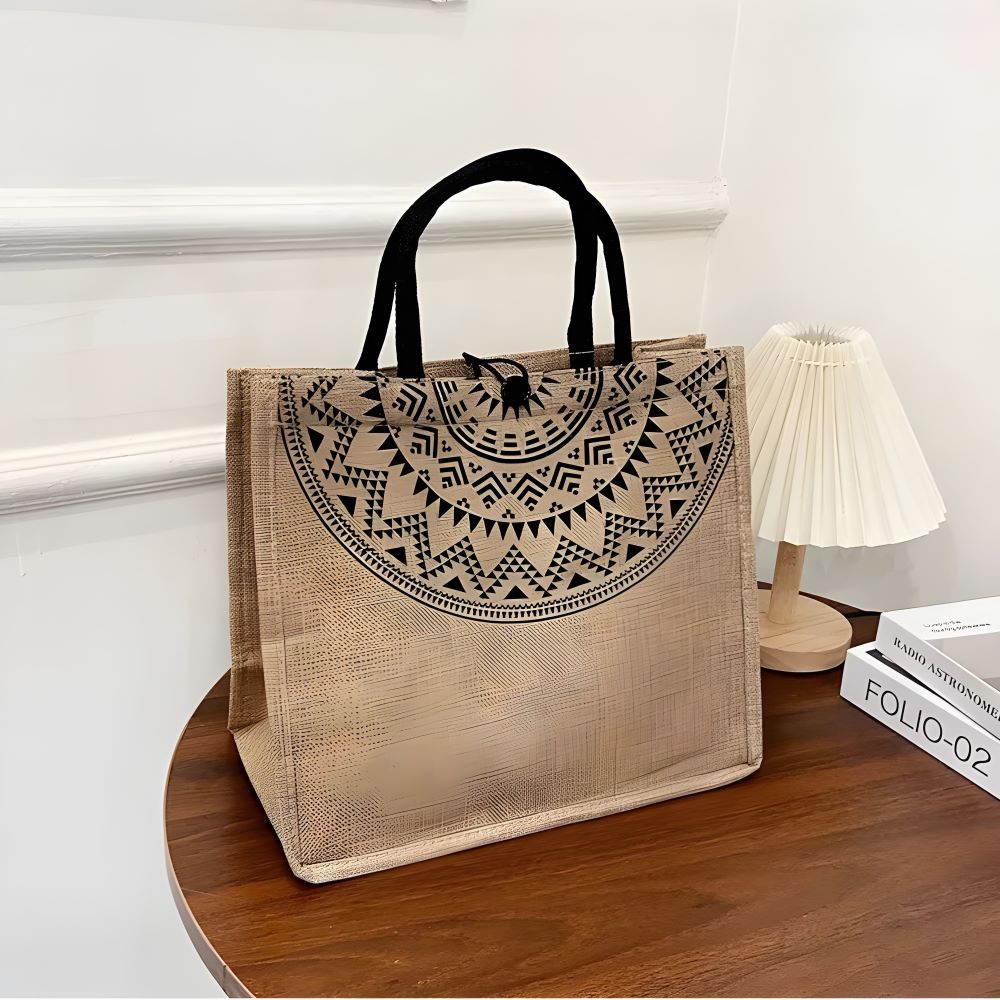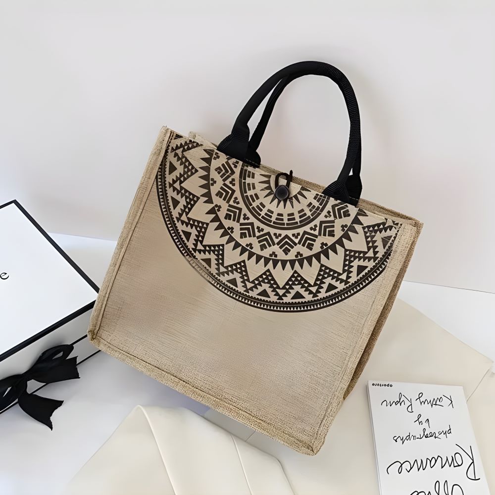 Linh Kiện Khánh Nhân - Nhà cung cấp hàng gia dụng tiện ích chuyên nghiệp nhất Việt Nam. Túi cói tự nhiên với họa tiết thổ cẩm hình bán nguyệt độc đáo, kết hợp quai xách vải màu đen tương phản. Sản phẩm thời trang, thân thiện với môi trường, phù hợp cho các chuyến đi biển, dạo phố hoặc đi chơi mùa hè, mang đến vẻ ngoài dịu dàng, nữ tính.