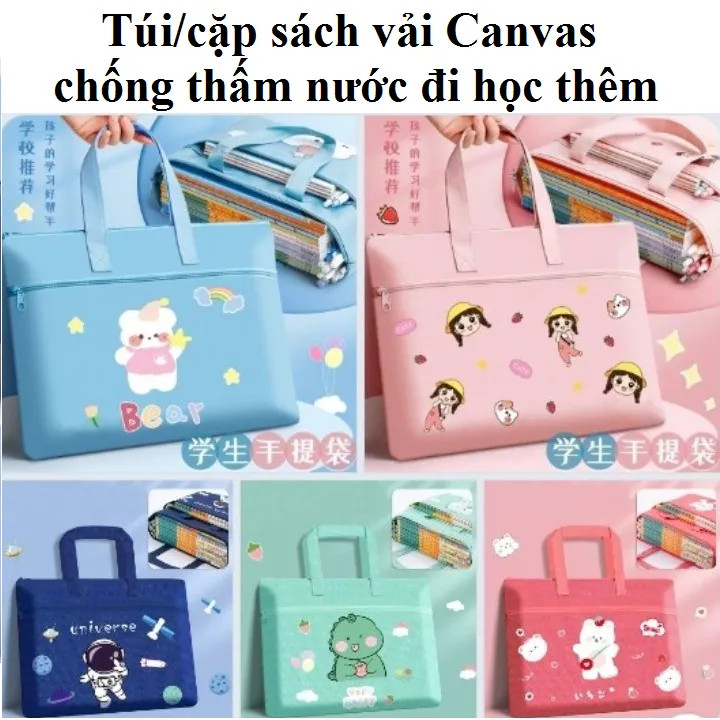 Túi xách học thêm cho bé tiểu học, cặp sách vải chống thấm nước đi học thêm cho bé
