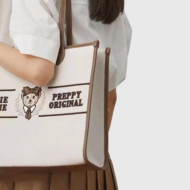-> Hãy cập nhật ngay cho tủ đồ của bạn một chiếc túi xách tote thêu hình hoạ tiết gấu TW dễ thương để tạo điểm nhấn cho phong cách của mình nhé