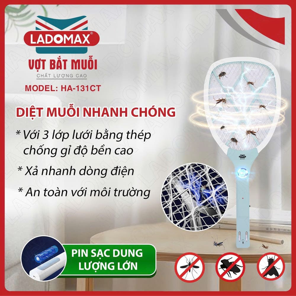 Tên sản phẩm: Vợt muỗi đa năng có đèn LED Ladomax HA-131CT